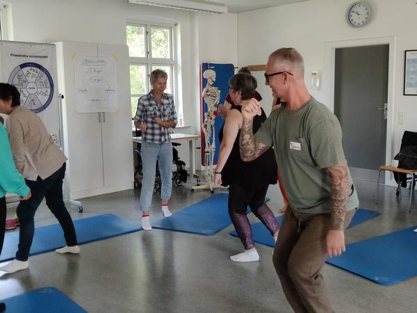 Hen over sommeren gennemførtes endnu et Kinaesthetics grundkursus på Center for Neurorehabilitering, Filadelfia (CfN). Dette kursus var noget særligt, idet det blev afholdt af 4 Kinaesthetics-trænere fra forskellige lande, 2 fra Danmark, 1 fra Tyskland og 1 fra Georgien. Alle trænerne er i gang med at uddanne sig til træner på niveau 3, så de også kan tilbyde Kinaesthetics overbygningskurser. Som en del af deres uddannelse fik trænerne under kurset supervision af en tysk Kinaesthetics-underviser, som står for uddannelse af trænere på dette niveau.