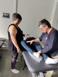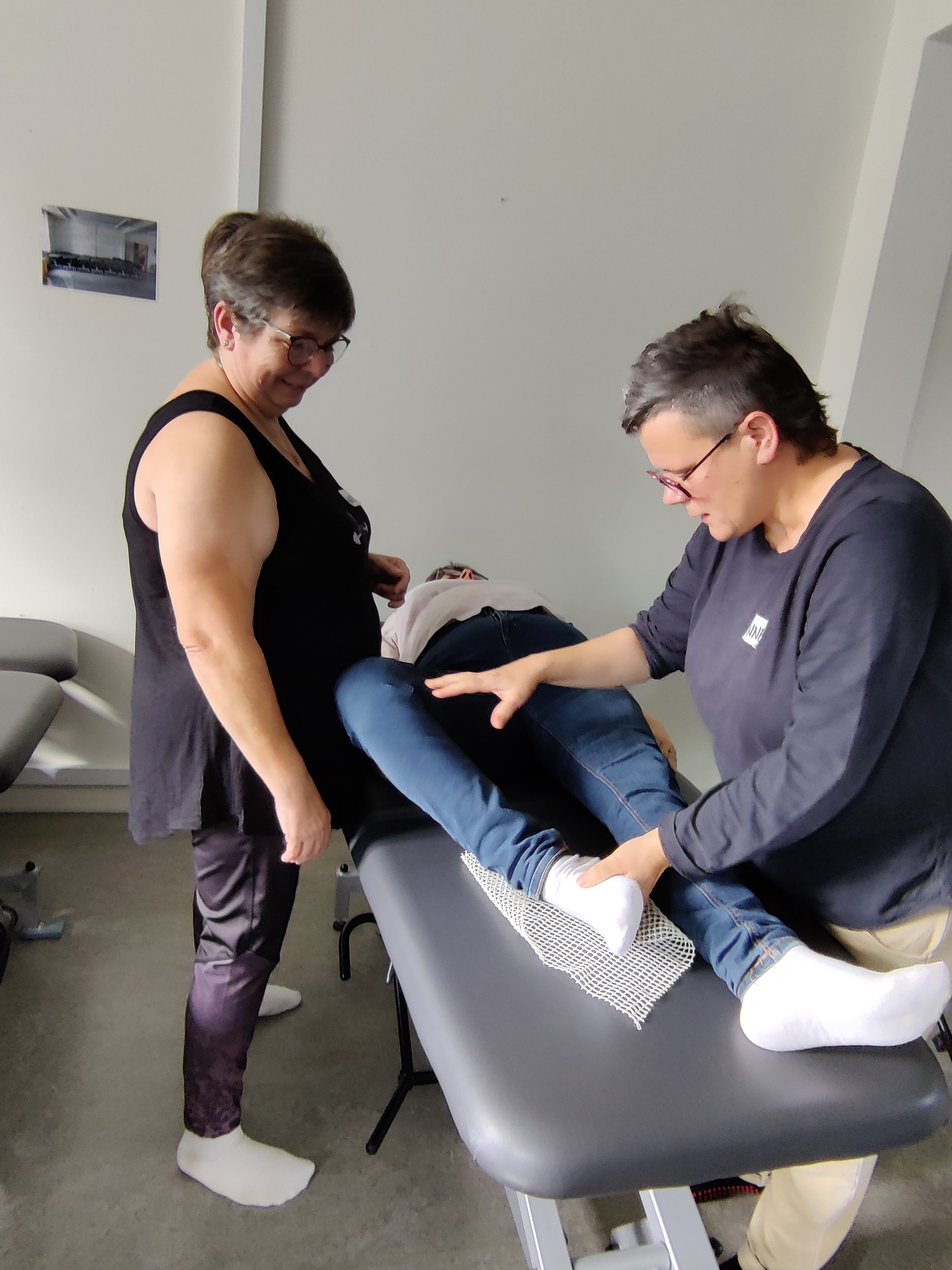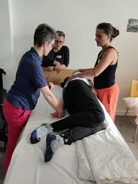 Center for Neurorehabilitering, FiladelfiaEngagerede plejepersonale og terapeuter afprøver forskellige muligheder på egen krop, inden de går til patienterne. Praksissupervision er en del af Kinaesthetics grundkurset. I slutningen af dagen fortæller og viser deltagerne hinanden, hvad de har afprøvet og udviklet og lært i samarbejdet med patienterne. Nogle har bemærket situationer med patienterne, hvor de mærker belastning i egen krop, og har fundet nye måder at bevæge sig på, så de undgår belastningen. Andre har hjulpet patienten til at udføre små aktive bevægelser, så patienten bedre kan benytte sine ressourcer under f.eks. forflytninger i sengen eller over i kørestolen