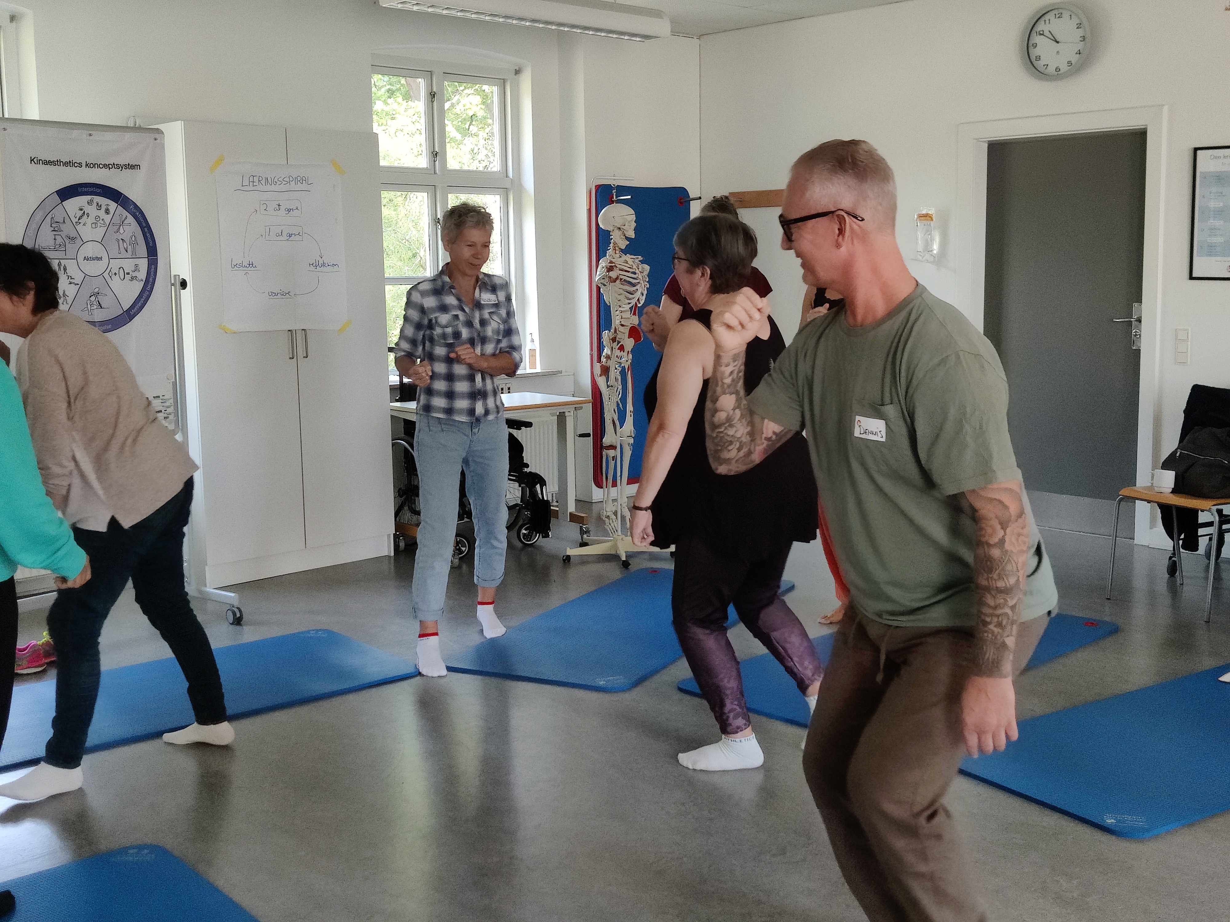 Hen over sommeren gennemførtes endnu et Kinaesthetics grundkursus på Center for Neurorehabilitering, Filadelfia (CfN). Dette kursus var noget særligt, idet det blev afholdt af 4 Kinaesthetics-trænere fra forskellige lande, 2 fra Danmark, 1 fra Tyskland og 1 fra Georgien. Alle trænerne er i gang med at uddanne sig til træner på niveau 3, så de også kan tilbyde Kinaesthetics overbygningskurser. Som en del af deres uddannelse fik trænerne under kurset supervision af en tysk Kinaesthetics-underviser, som står for uddannelse af trænere på dette niveau.